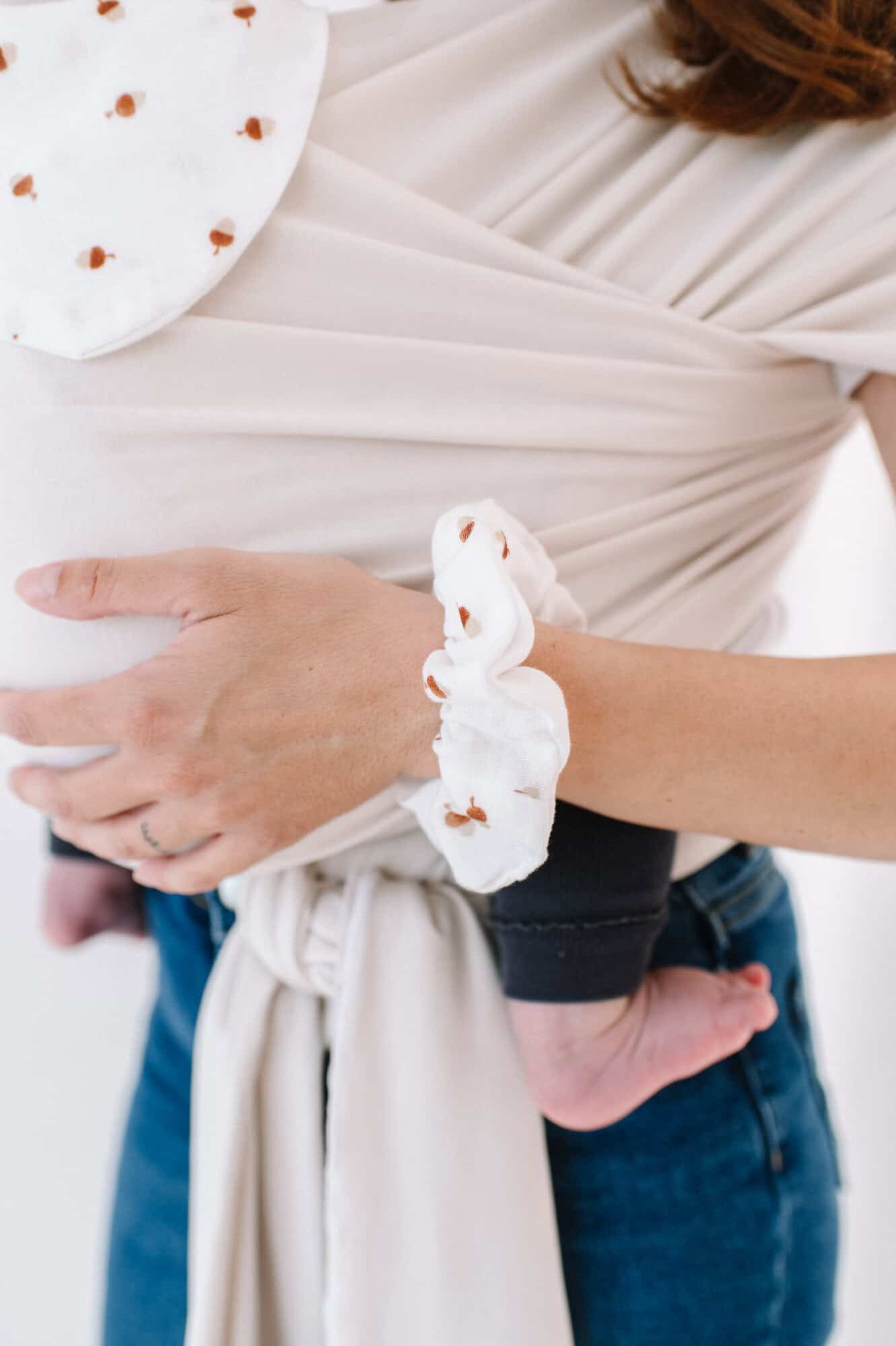 Tako se nosi sreča je prikupen paket sestavljen iz mehkega traku – nosilke, trakca za mamico (uni) in dojenčka (0-6 mesecev), rutke, elastike za lase ter bona za online svetovanje o pravilnem nošenju otrok.